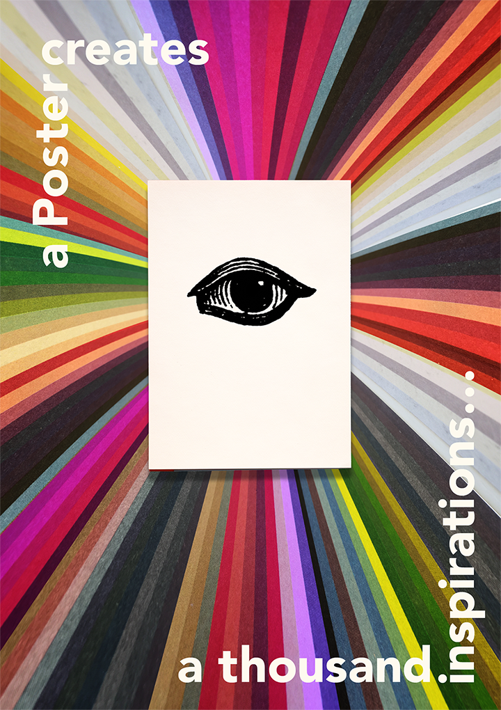 The elements in the poster seek to answer those questions; in a statement complimented by legends of design and communication. The eye is a homage to the thought-provoking works of René Magritte, and pays respect to the early days of poster printing throughout Europe in the 18th and 19th Century. The colours emulate the iconic works of Milton Glaser who helped redefine poster art and design in America and across the globe. The typeface used is Avenir, by the legendary Typographer Adrian Frutiger whose letters helped express communication and character in a perfect balance of style, function and expression.